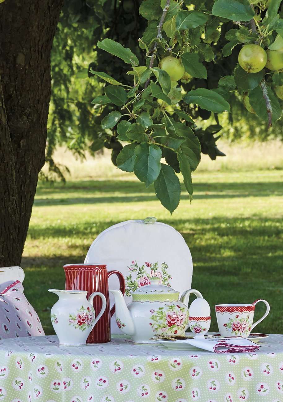Коллекция Mary буквально сквозит летом: классический цветочный узор Greengate в ней дополняется яркими ягодами и любимым горошком. Такое сочетание влюбляет в себя с первого взгляда! Сочные зеленый, красный и молочный белый – такая игра красок создаст позитивный настрой на весь день! Каждая коллекция повторяет элементы и формы коллекций прошлых сезонов. Так что смело руководствуйтесь правилом Mix and Match сочетай и смешивай и создавайте свои уникальные композиции.