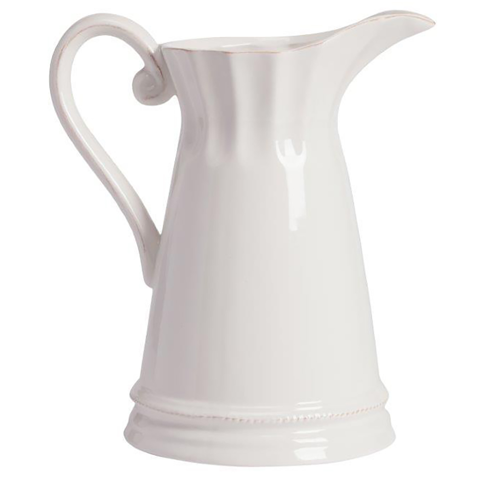 Элегантный керамический белый кувшин классической формы с декором в виде тонких линий, подчеркивающих его силуэт, подарит вам эстетическое наслаждение и позитивный настрой. Несмотря на минимальный декор, он выглядит очень элегантно и вполне подойдет для украшения гостиной, кухни и дачного стола. Кувшин можно приобрести отдельно или в дополнение к другим предметам коллекции.