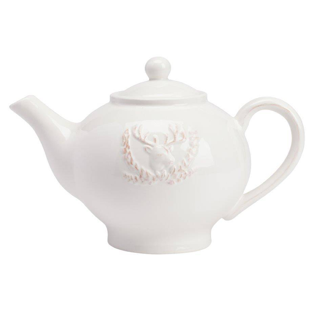 Заварной чайник Lobulari выполнен из керамики в белом цвете. Декором служит рельефное изображение головы лося. Чайник можно приобрести как отдельно, так и совместно с другими предметами коллекции.
