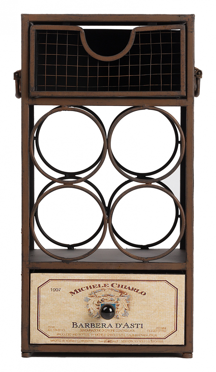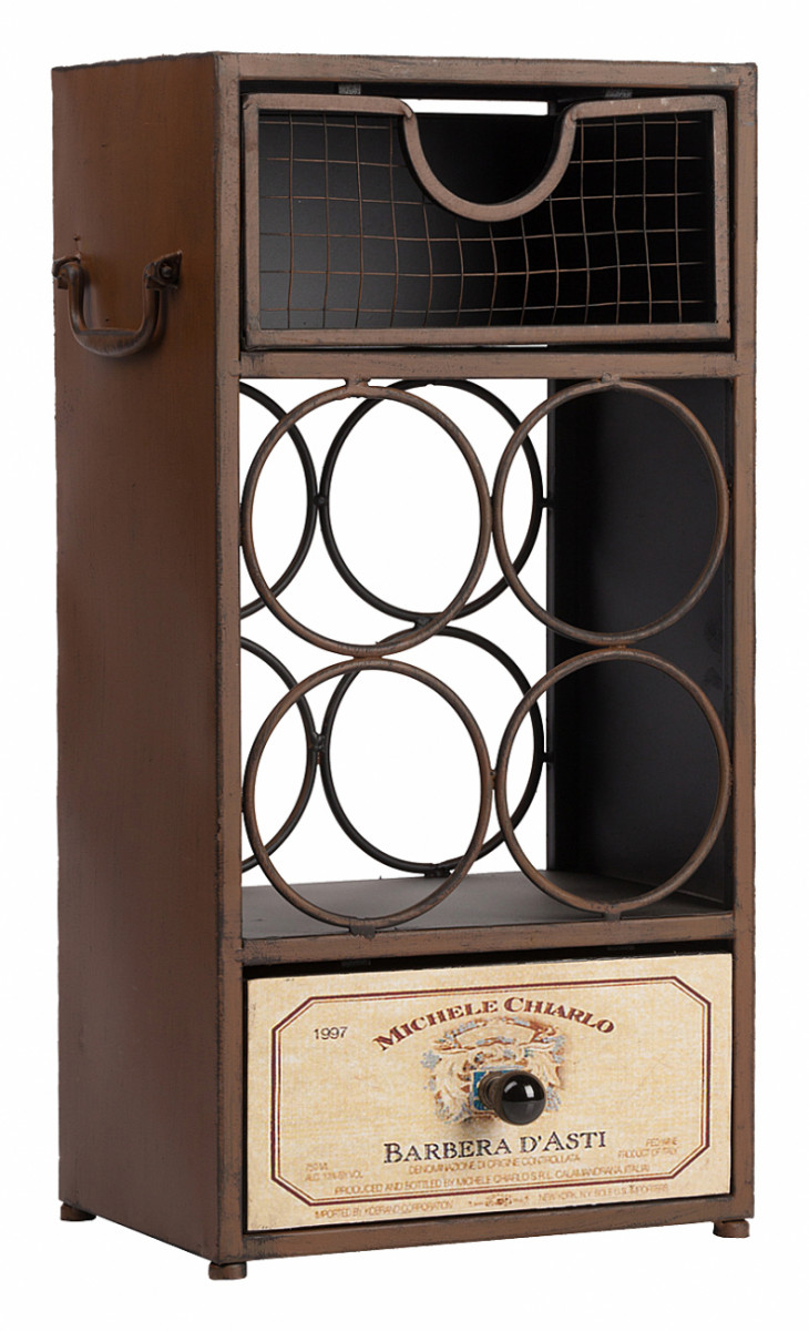 Многофункциональная подставка для вина Bevanda непременно станет главным украшением вашей кухни и привнесет в помещение провинциальную изысканность и французский шарм. Аксессуар можно использовать по назначению — вы сможете аккуратно разместить в нем четыре бутылки вашего любимого вина. Ящички сверху и снизу позволяют хранить необходимые мелкие вещи, например, штопор. Благодаря ручкам по бокам, подставку с легкостью можно перенести в нужное вам место.