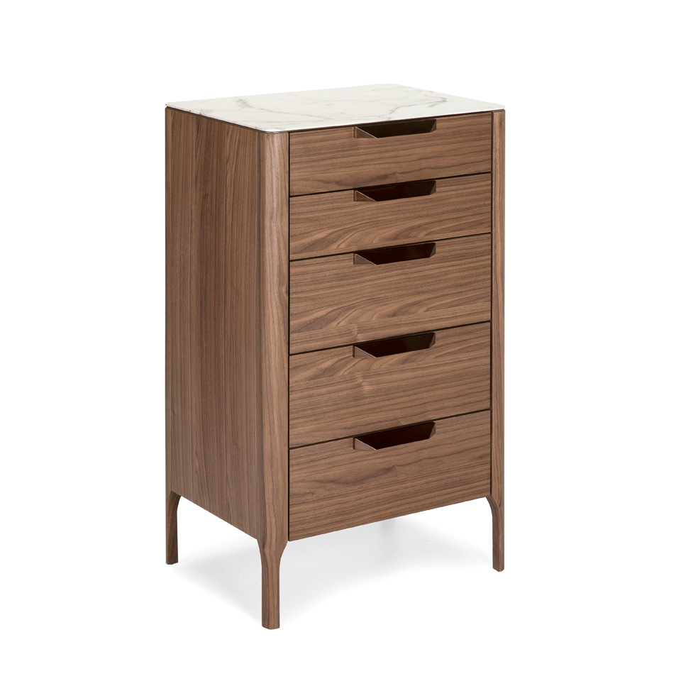 Комод с 5 ящиками, изготовленный из шпона ореха с имитацией мраморного стекла