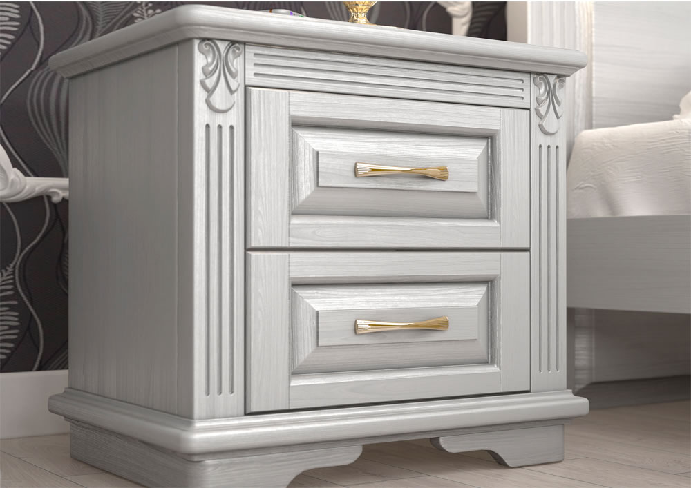 Тумба прикроватная Палермо, предназначенная для хранения личных вещей, различных мелочей и необходимых аксессуаров, оснащена двумя вместительными выкатными ящиками на телескопических направляющих в базовой комплектации и с ситемой дозакрытия в опциональном варианте. Безупречно выверенные пропорции классического стиля в сочетании со 100 подлинным массивом бука или ясеня и первосходное качество отделки гарантирует приятное использование в течение всего срока службы тумбы.