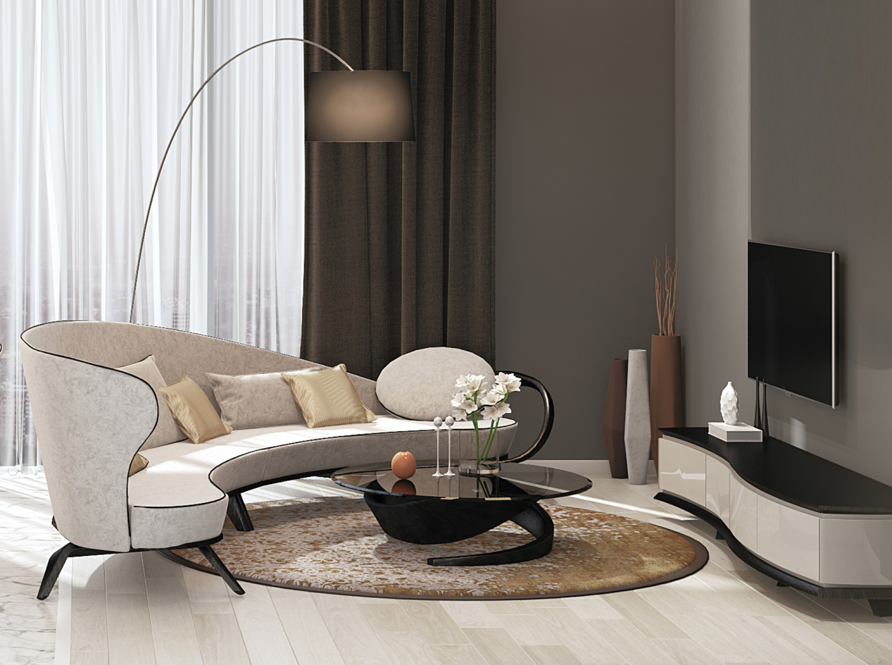 Тумбочка с радиусными фасадами основанием и столешницей из массива дерева.