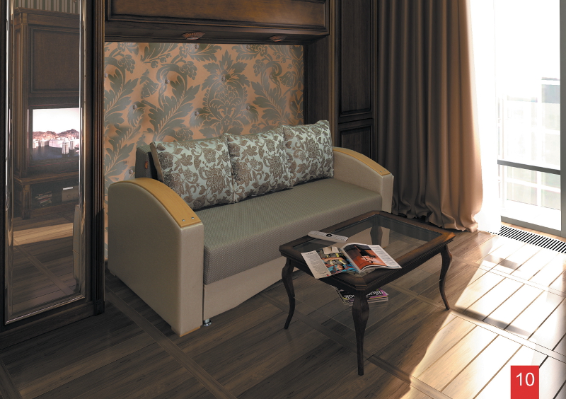 Габаритные размеры: 1 430х1 070 х 490 Спальное место: 1 300 х2 000. Механизм трансформации: "Аккордеон"