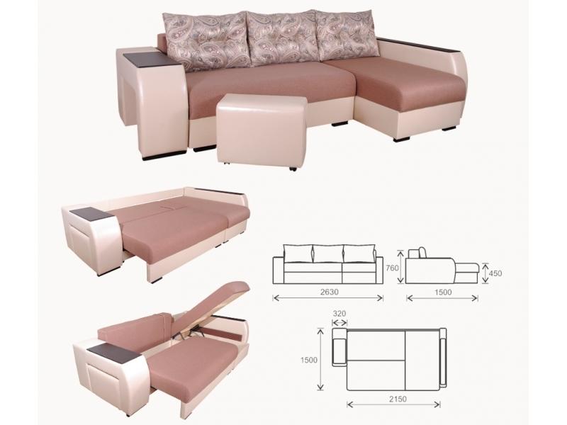 Габаритный размер 2260*1050, спальное место в первой раскладке 1970*1500, спальное место при полной раскладке 1970*2000.