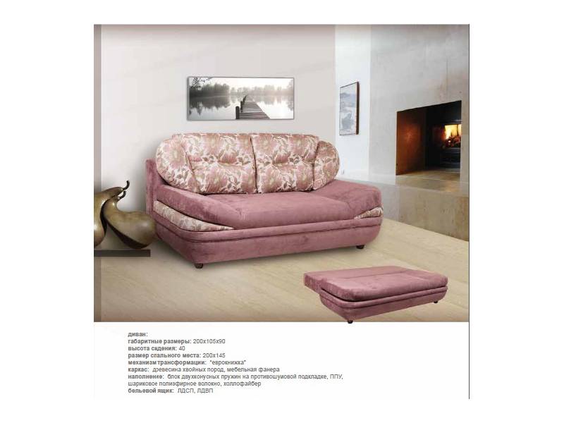Габаритные размеры (мм ): 1900*900, Спальное место (мм ): 1900*1350, Механизм трансформации: «еврокнижка»