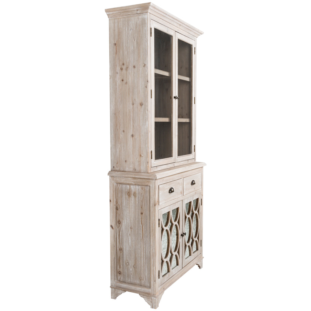 Общие габариты: длина 88, глубина 38, высота 196 см Вес: 40,5 кг Материалы: корпус - натуральное дерево ели, задняя панель - МДФ, витрина - стекло, отделка нижнего шкафа - зеркальное стекло, ручки - металл Размер в упаковке (2 коробки): 93×43×95 см, 95×40×111 см Вес в упаковке (2 коробки): 24,5 и 21 кг