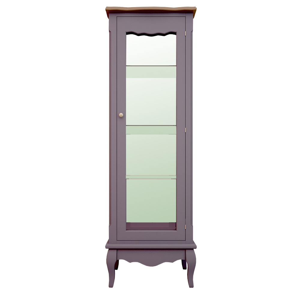 Цвет: Лавандовый,Глубина, см: 37,Высота, см: 139,Ширина, см: 45,Материал: Массив березы,Вес: 35 кг,Стиль: Прованс,Цвет столешницы: Орех,Дизайн: Франция,Назначение: Для посуды,Конструкция: Витрина,Количество дверей: 1,Ножки: с гнутыми ножками,Опора: На ножках,