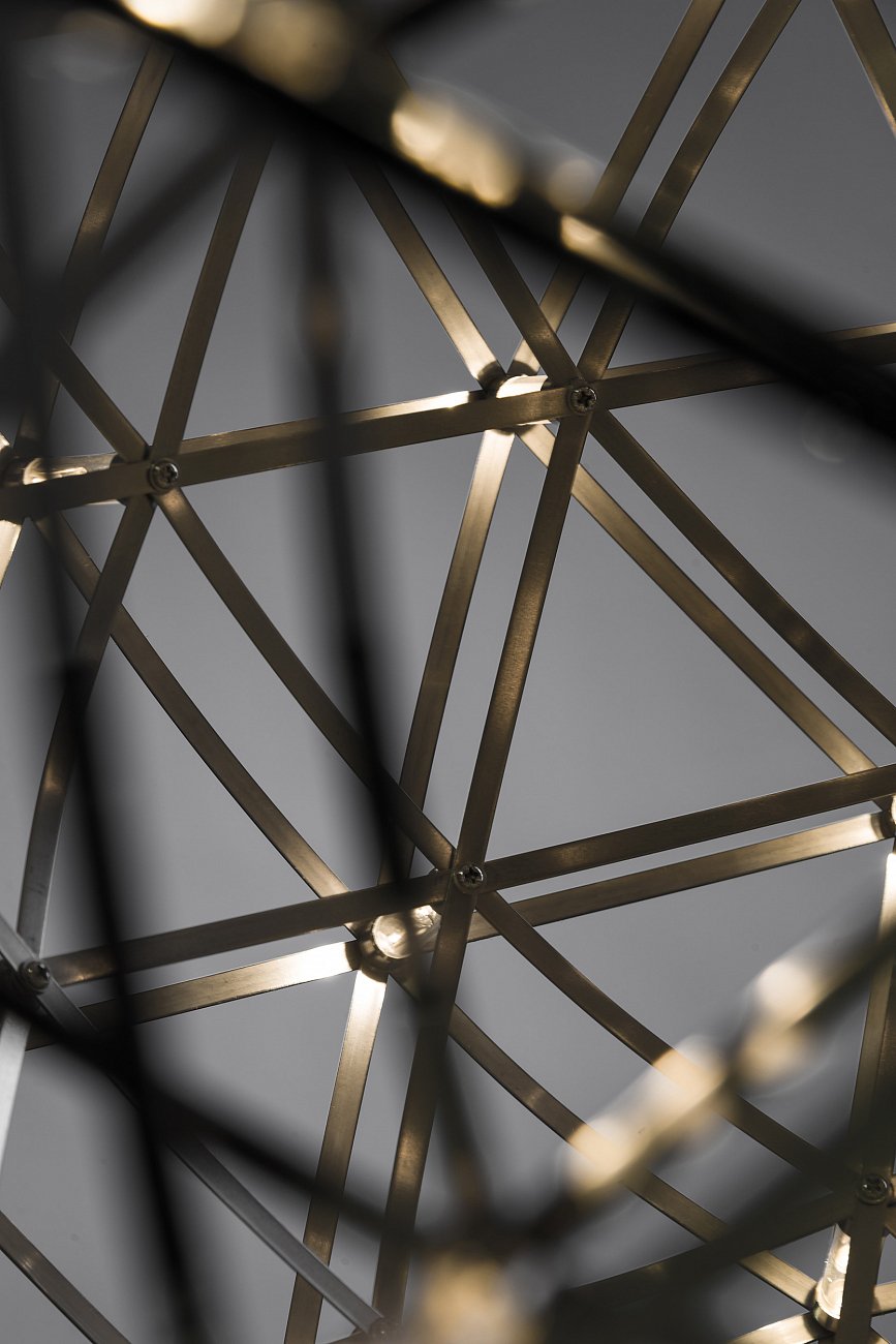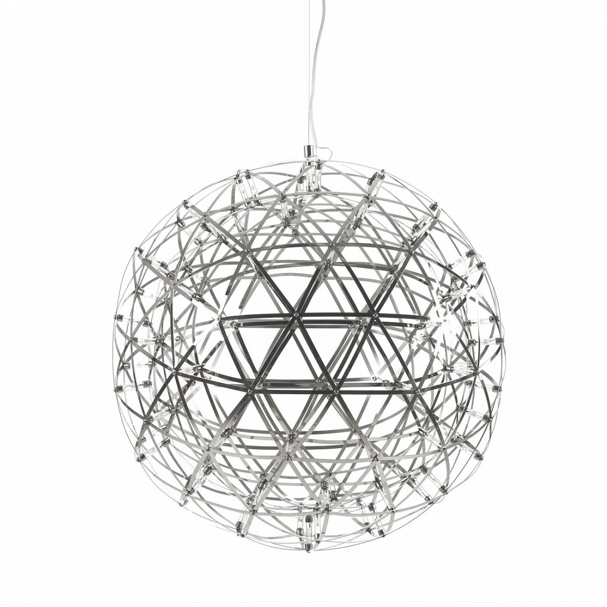 Дизайнер Раймонд Путс, разработавший подвесной светильник Raymond диаметр 61, имел техническое образование, и в его работе прослеживается любовь к точности и последовательности. При свете дня светильник похож на сферу, внутри которой царит хаос, но как только вы включаете его, проявляются четкие линии и формы. Внутри абажура находится множество прозрачных линз, которые в сочетании с блеском нержавеющей стали рассеивают свет.