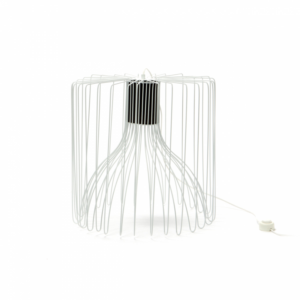 Прутья абажура изготовлены из прочного металла, в наличии два цвета — белый и черный, что легко подчеркнет любой современный интерьер...